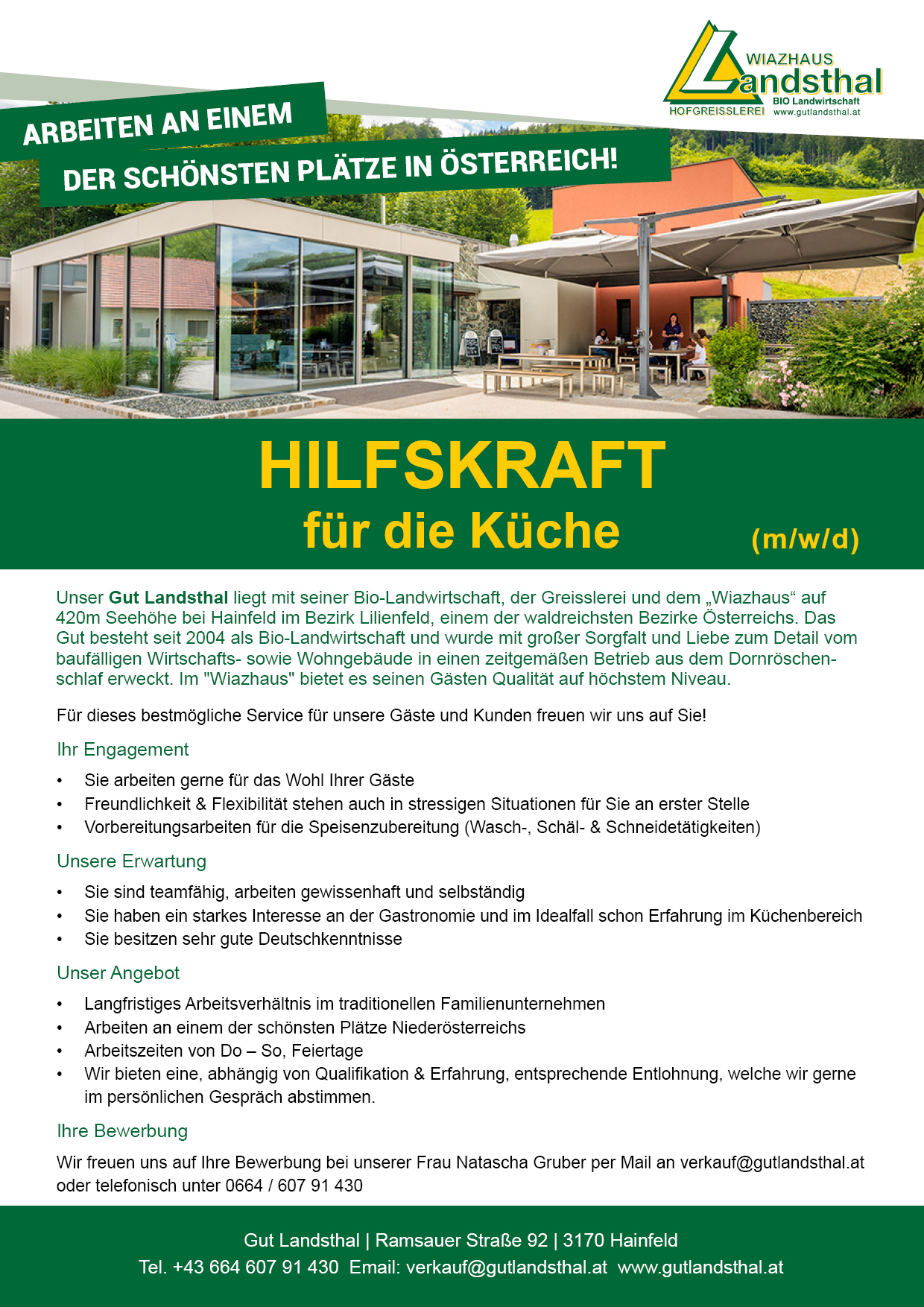Sie erreichen uns unter verkauf@gutlandsthal.at oder unter 0664/60 79 14 30